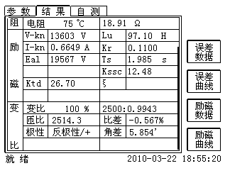 | 匝數(shù)比 | 被測試的二次繞組與一次繞組的實際匝比 | √ | √ | √ | √ | √ | √ | √ | √ | |