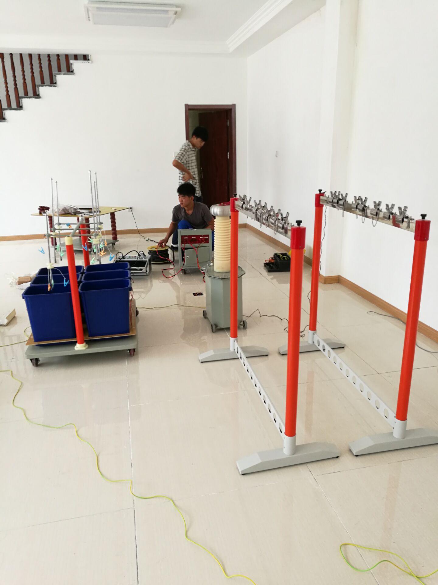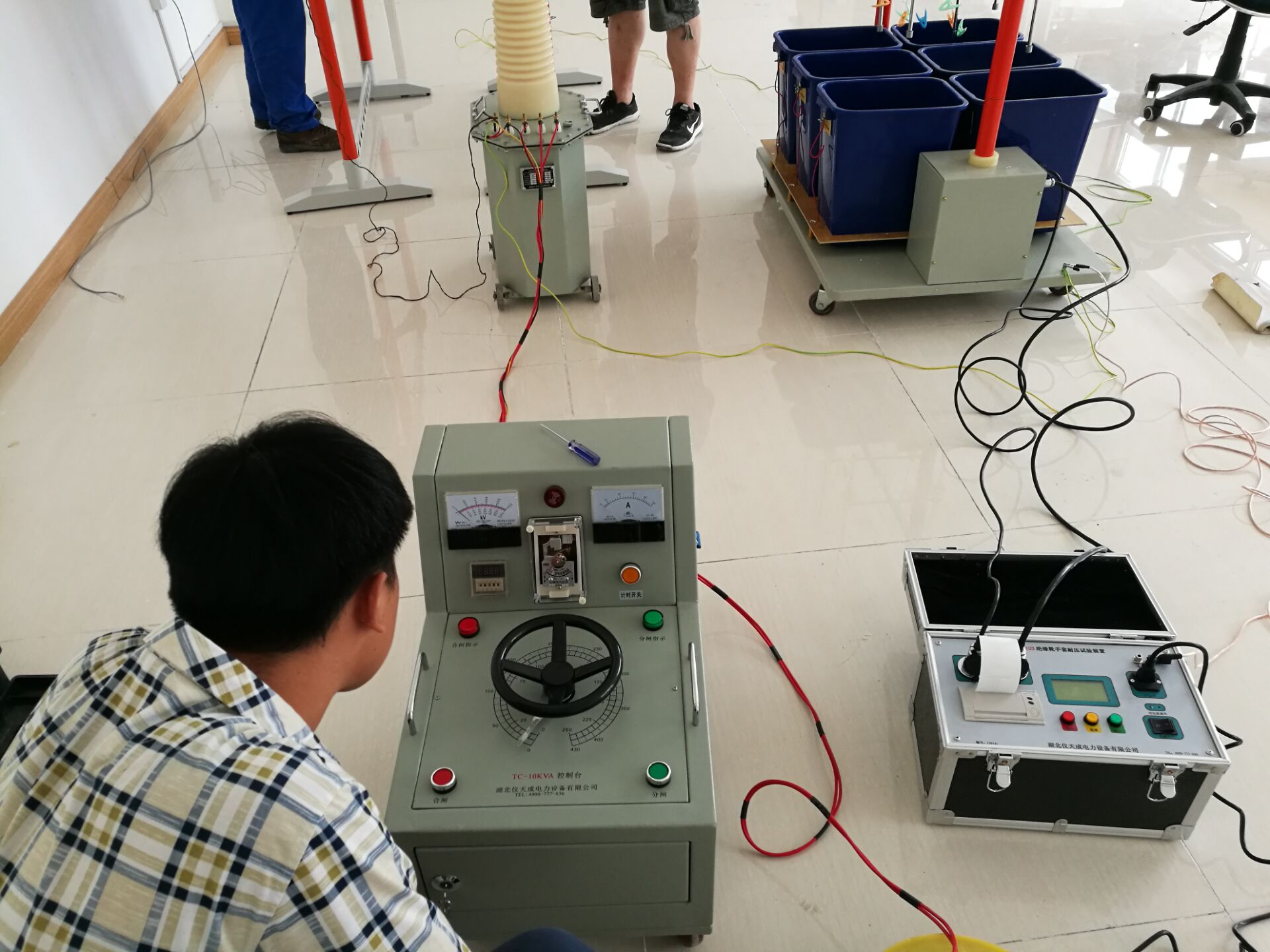 此次培訓(xùn)的設(shè)備和內(nèi)容很多,其中培訓(xùn)的主要設(shè)備是YTC1103 絕緣靴(手套)耐壓試驗裝置。李工首先對設(shè)備的原理和功能進行了全面而細致的講解。我公司的該設(shè)備比較先進,測試速度快,提高了工作效率;耐壓、高壓泄漏電流直讀,還可自動識別不合格試品,智能化程度高;可同時測試4雙絕緣靴(手套),并可讀取每只的泄漏電流,準(zhǔn)確判斷不合格的絕緣靴(手套);底部裝配腳輪,可隨意移動。非常方便。