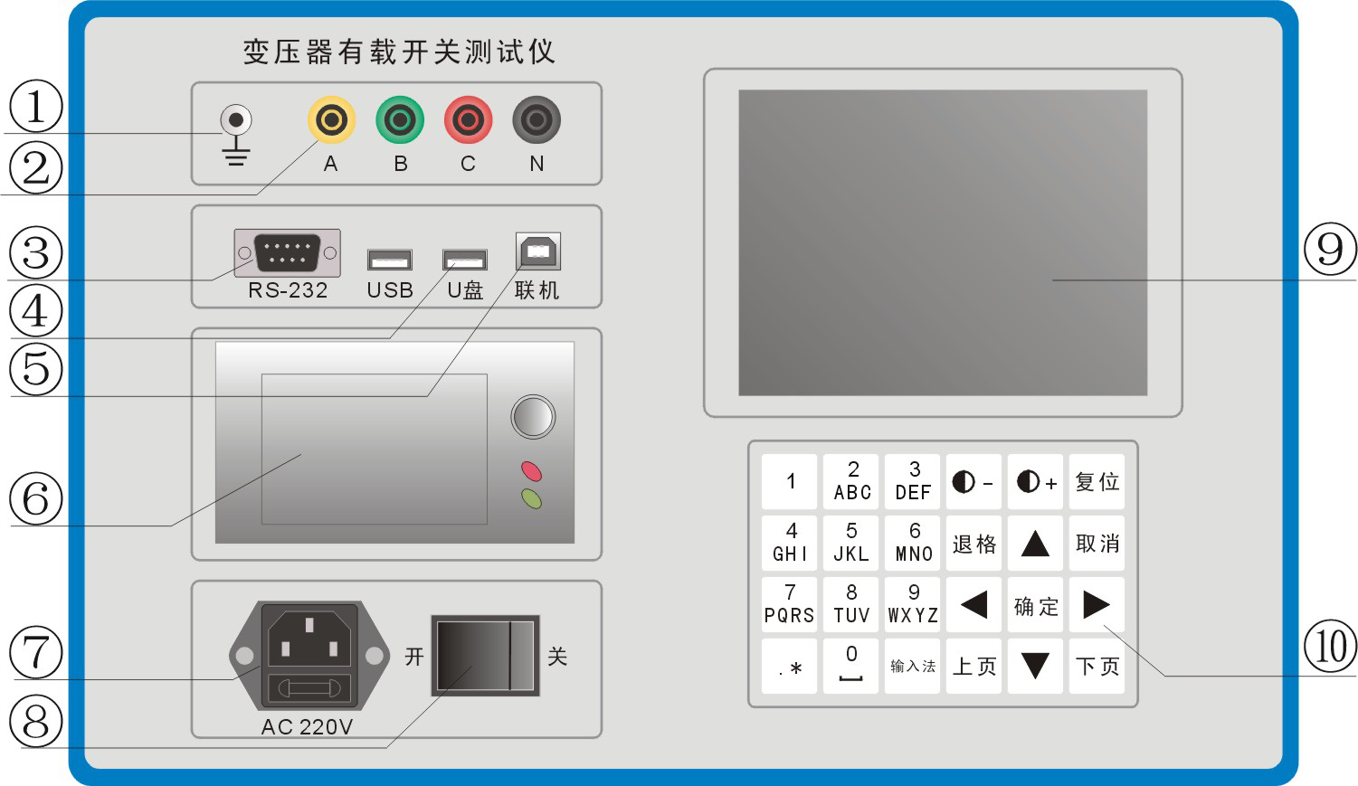 變壓器有載開關(guān)測試儀面板介紹以及產(chǎn)品概述