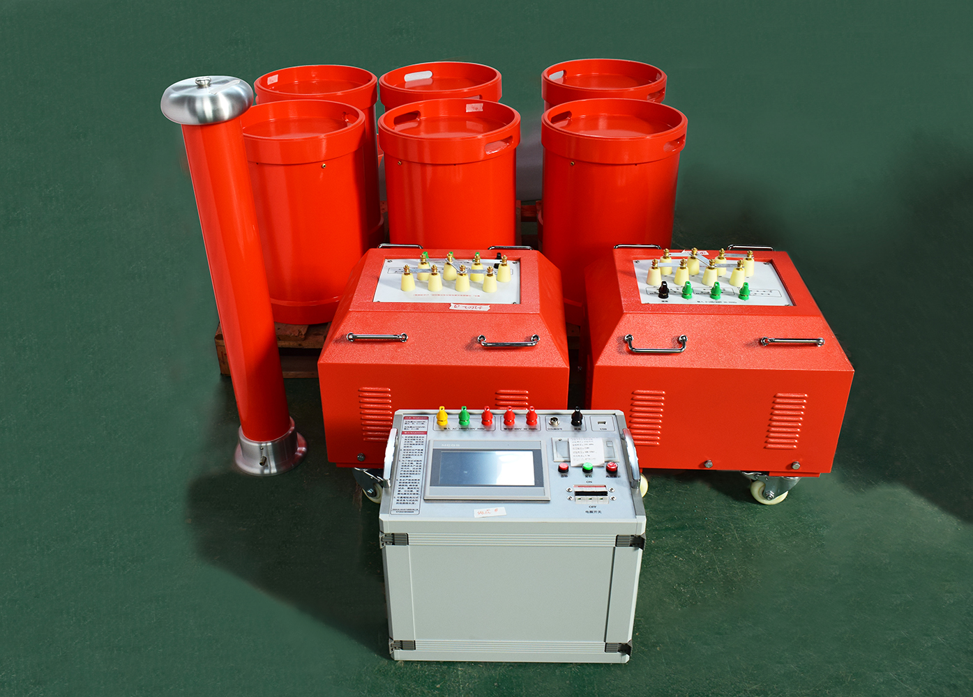 按 “變頻電源→勵(lì)磁變壓器→串聯(lián)電抗器→被試電纜→電容分壓器→接地” 的順序,將所有設(shè)備串聯(lián)成閉合主回路;同時(shí)把電容分壓器的電壓信號(hào)接入變頻電源(用于實(shí)時(shí)監(jiān)測(cè)電壓),且所有設(shè)備外殼、電纜非試驗(yàn)相均需可靠接地(接地電阻≤4Ω),接線后需雙人交叉核對(duì),避免錯(cuò)接、漏接。