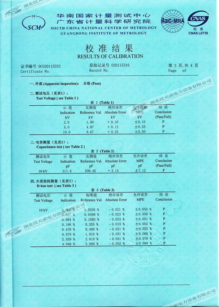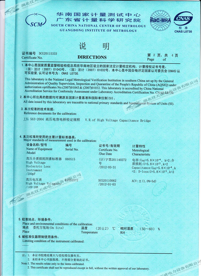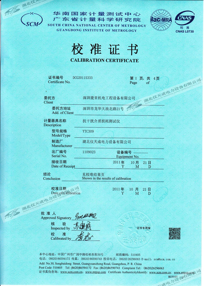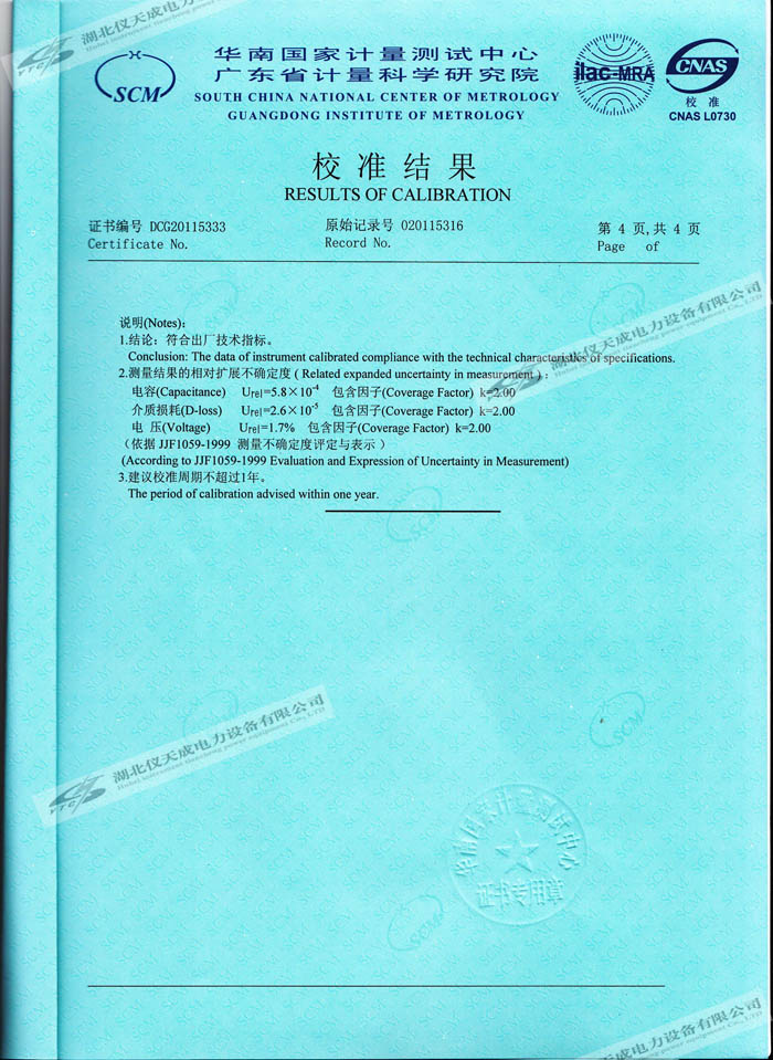 轉(zhuǎn)載:"YTC309抗干擾介質(zhì)損耗測試儀的資質(zhì)證書" 請注明來源于儀天成電力。 更多技術(shù)問題請致電儀天成電力客戶服務(wù):027-87876585,技術(shù)部專線:027-87876585,在線客服:719388481